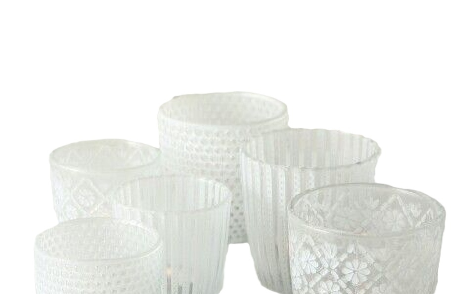 Windlicht Teelichthalter Glas lackiert weiß matt H 7 - 9 cm 2er Set