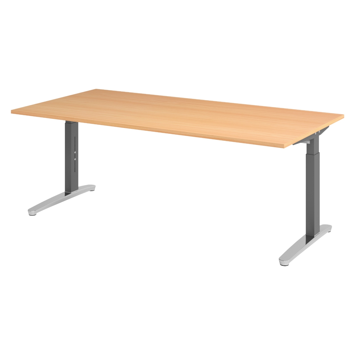 bümö manuell höhenverstellbarer Schreibtisch 200x100 in Buche, Gestell in graphit/alu - PC Tisch höhenverstellbar & groß, höhenverstellbarer Tisch