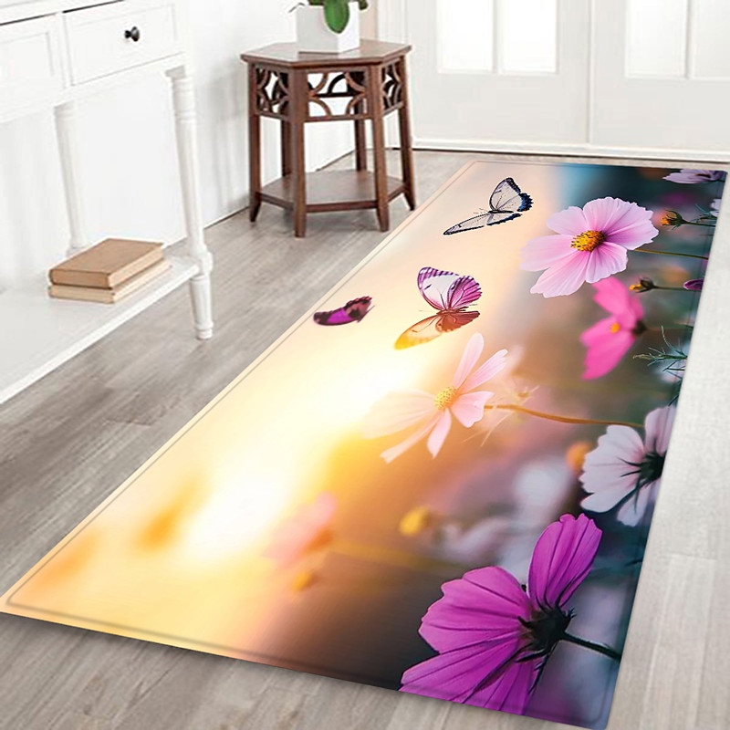 Hallway Runner Rug Plant Flower Pattern Flannel Fabric Printed Home Floor Decoration Mat Anti Slip Soft Door Mat Entrance Bathroom Floor Rug