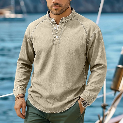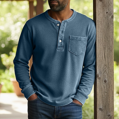 Per uomo Maglia Henley Camicia 100% cotone lavaggio acido Maglietta Manica Lunga Vintage Tinta unita Retrò Vintage Casual Henley Stile Vintage Lavato Henley Casuale Primavera Autunno Tutte le stagioni