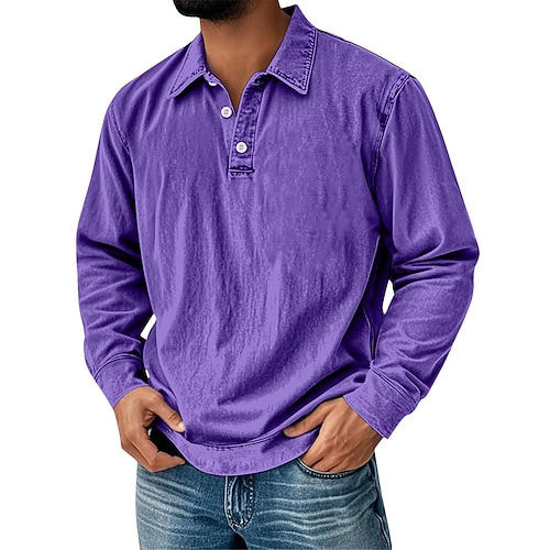 Per uomo Maglietta Maglia Henley Camicia 100% cotone lavaggio acido Manica Lunga Henley Primavera Autunno Autunno Inverno Semplice Vintage Streetwear Casual Lavato Manica corta Casuale Casa
