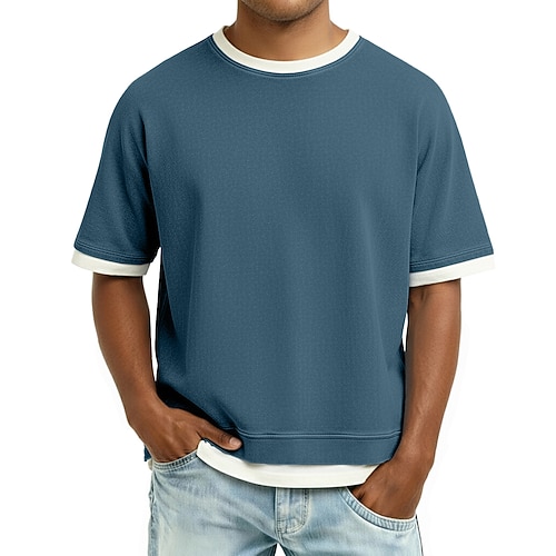Per uomo Maglietta Camicia 100% cotone lavaggio acido Manica Corta Girocollo Primavera Autunno Autunno Inverno Semplice Vintage Streetwear Casual Blocco di colore Finto due pezzi Lavato Casuale