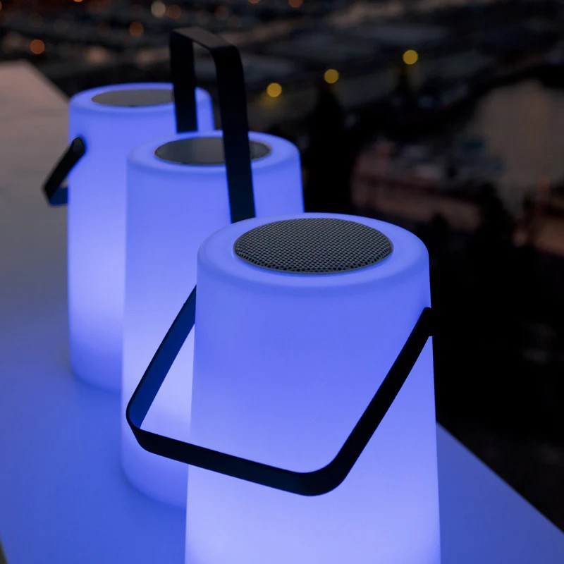 New Garden Nomada Play - lampe de table avec haut-parleur Bluetooth et télécommande - 19 x 30 cm - 3W RGB LED inclus - IP43 - blanc