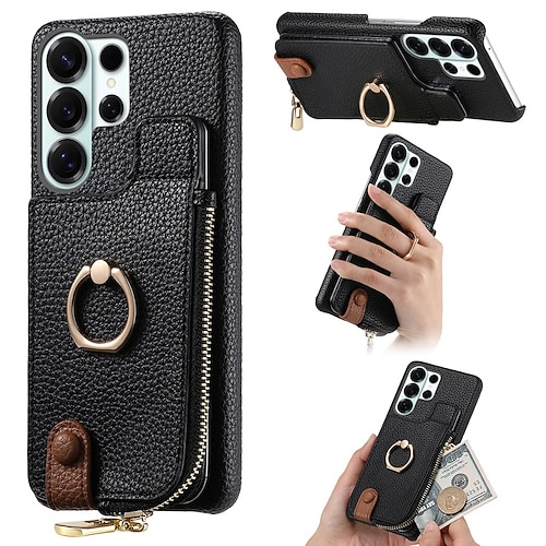 Handy Hülle Handyhüllen Für Samsung Galaxy S26 Ultra Plus S25 S24 S23 S22 S23 FE S21 Ultra Plus A55 5G A15 A14 Rückseite Brieftaschenhülle Mit Ständer Ringhalter Reisverschluss Retro TPU PU-Leder
