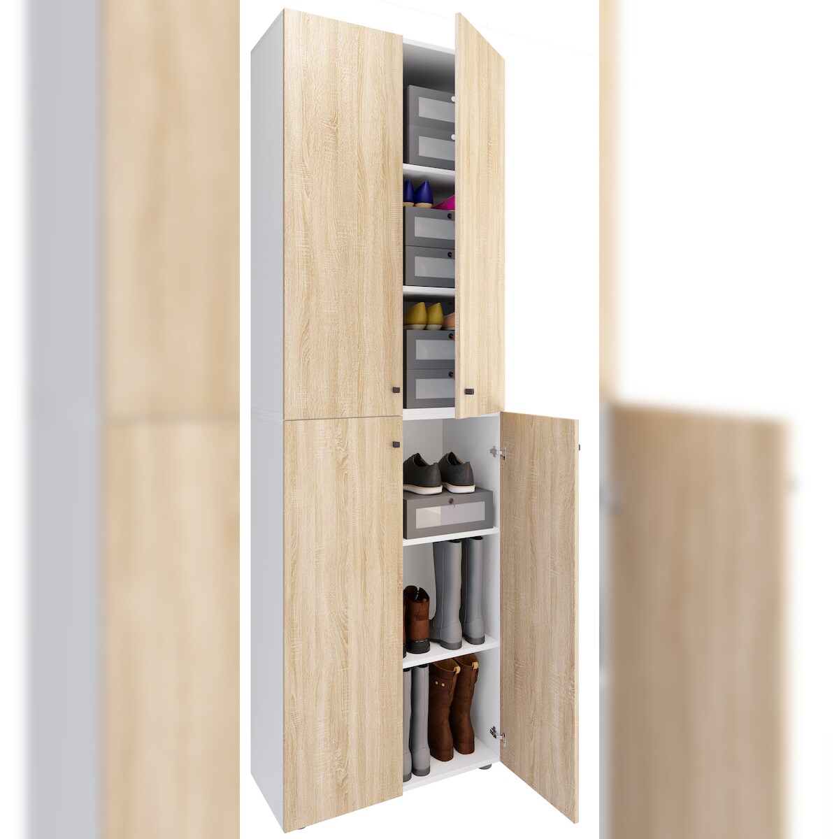 VCM Schuhschrank Lona Weiß / Sonoma-Eiche H. 220 x B. 70 x T. 40cm