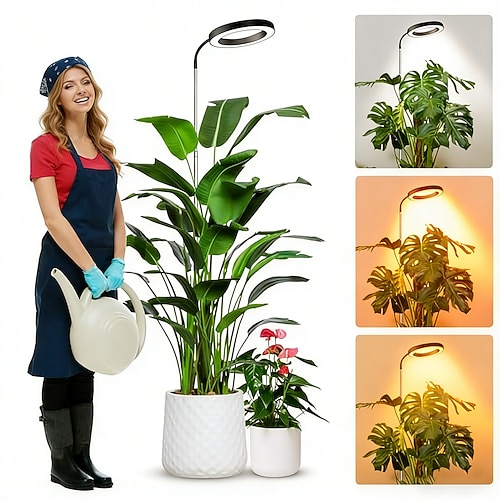 65 Zoll verstellbare Angel-Ring-Pflanzenlampe, Vollspektrum, 72 LEDs, Timer, dimmbare Helligkeit, USB-Anschluss, für Zimmerpflanzen, Hydrokultur, Gemüse, Gewächshaus, Sukkulenten