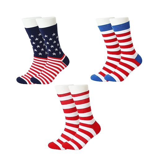 Herren 3 Paare Socken Laufsocken Freizeitsocken Blau Rote Farbe Sternenbanner Lässig Outdoor Urlaub Mittel Ganzjahres Mode Streetwear