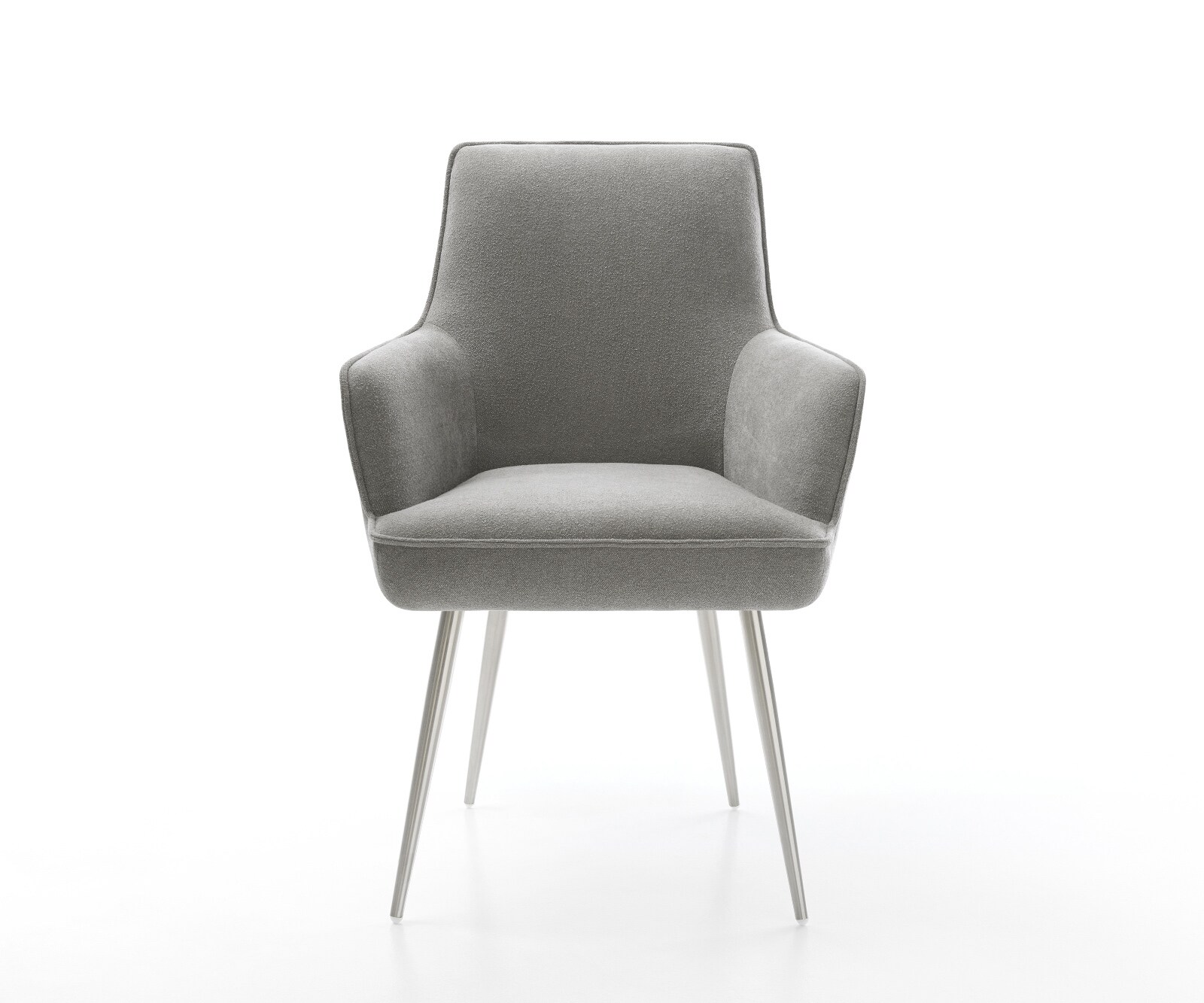DELIFE Eetkamerstoel Heira-Flex met armleuning zachte stof met structuur grijs 4-poot conisch roestvrij staal pocketveer kern