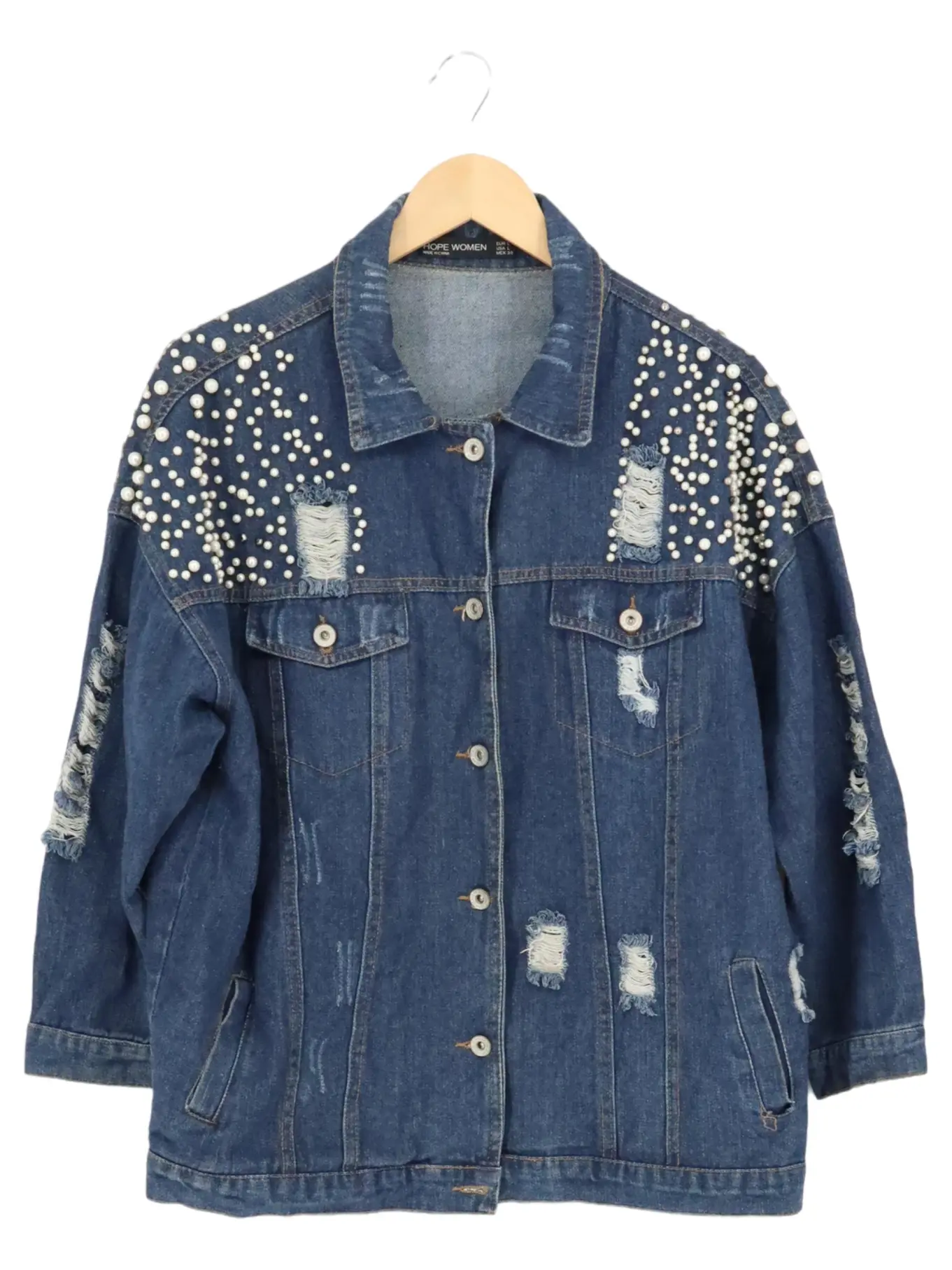 HOPE Damen Jeansjacke Blau L Perlen Akzente Urban Look