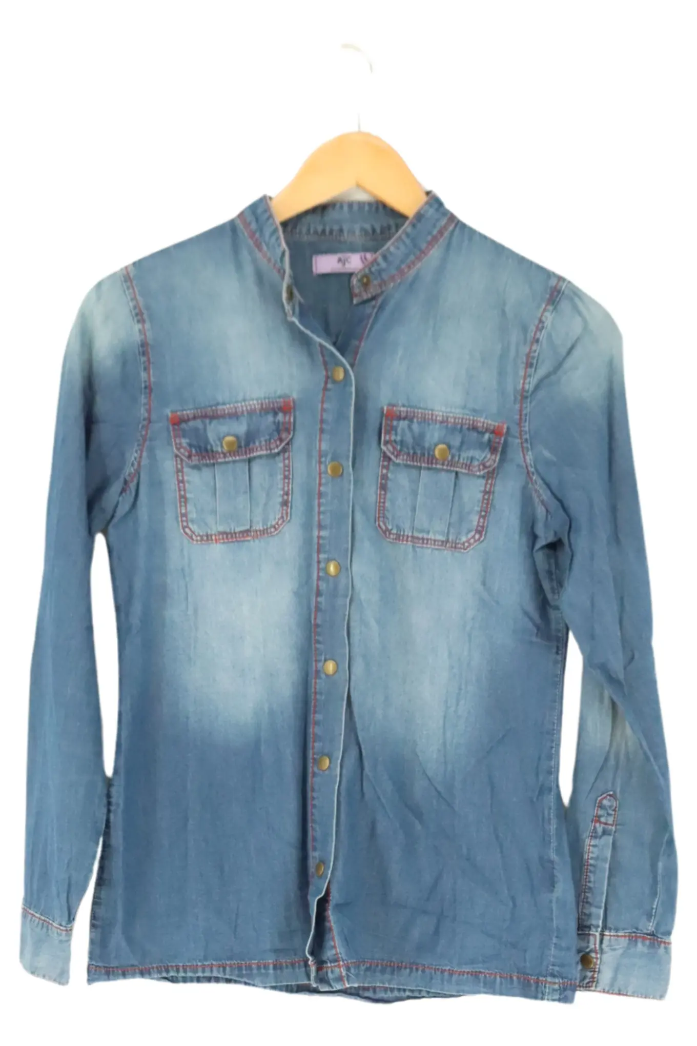 AJC Hemdbluse Blau Gr. 34 Damen Langarm Baumwolle Rote Nähte