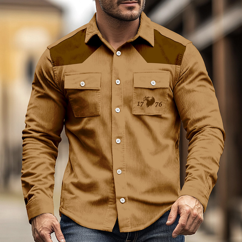 Men's Color Block Letter Printed 1776 Corduroy Shirt Western Shirt Shirt Jacket Long Sleeve Vintage Retro Outdoor WorkWear Fall Winter Turndown 3D Print Cowboy Shirts Jacket with Flap Pockets Saddle