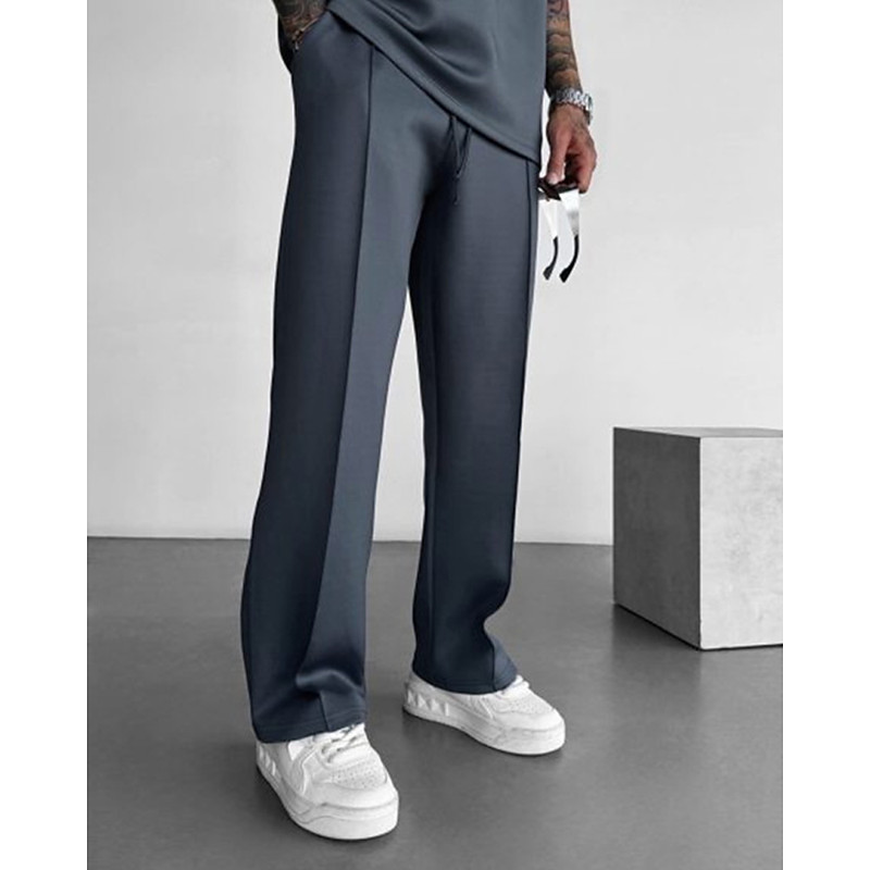 Men's Sweatpants Trousers Baggy Pants Straight Leg Sweatpants Pleated Pants Drawstring Elastic Waist Plain Breathable Full Length Sports Outdoor Casual Daily Fashion Streetwear Black Navy Blue
