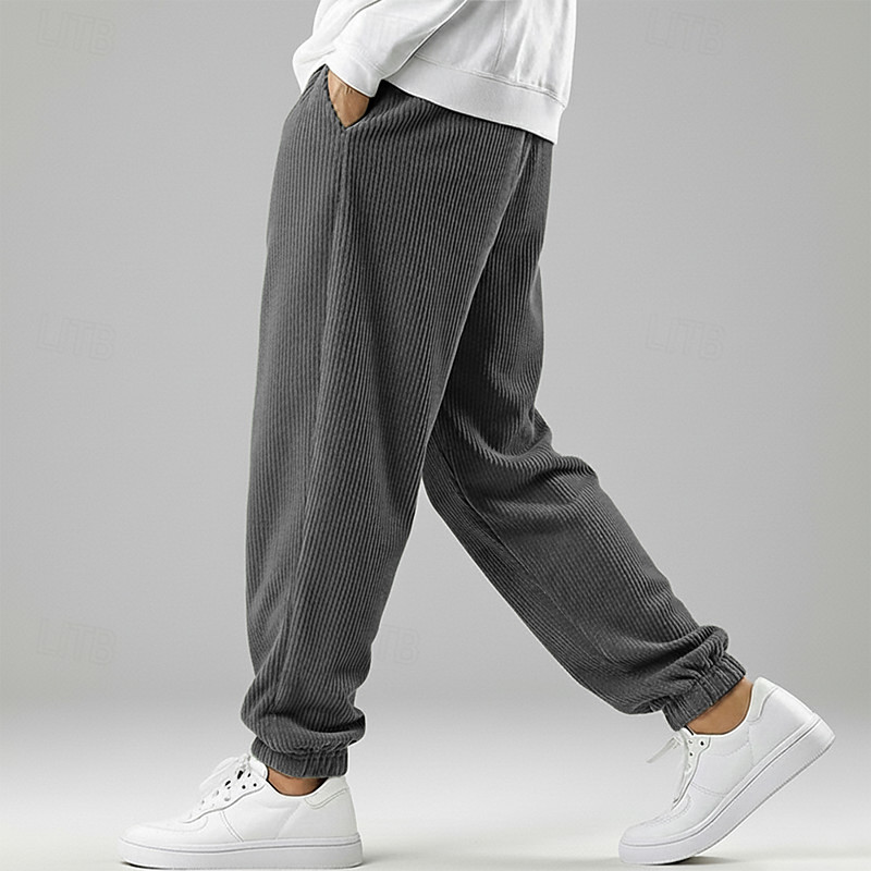 Men's Sweatpants Joggers Trousers Corduroy Pants Baggy Pants Drawstring Pleated Elastic Cuff Plain Comfort Breathable Full Length Outdoor Casual Daily Vacation Sports Blue Black Micro-elastic