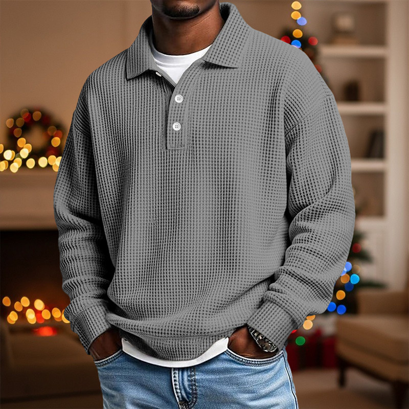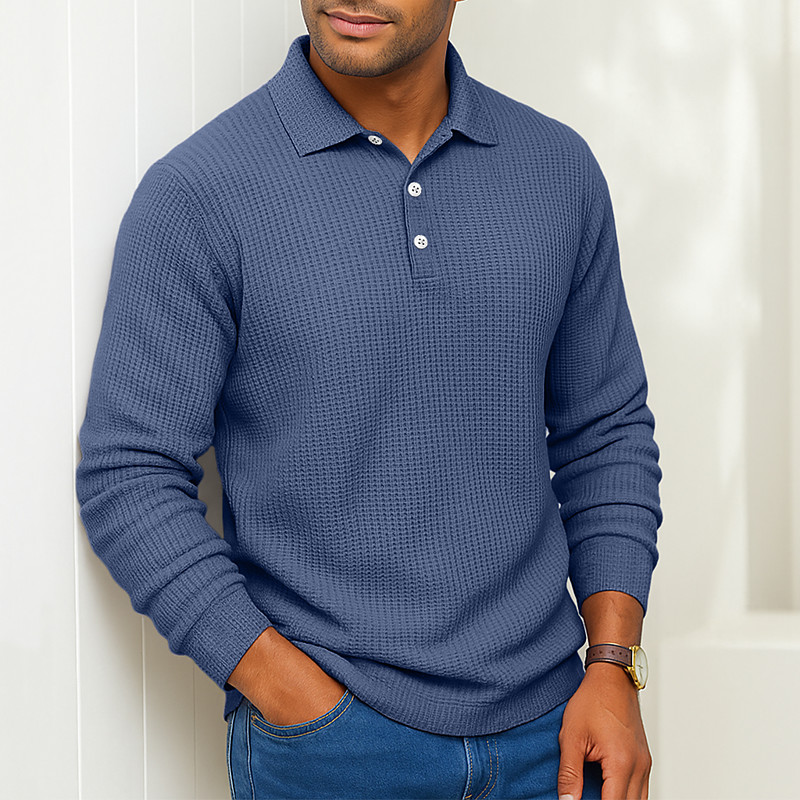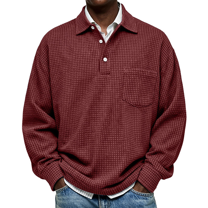 Men's Waffle Polo Shirts Polo Shirts Casual Street Lapel Long Sleeve Basic Modern Plain Pocket Buttons Spring Fall Regular Fit Blue Grey Black White Light Green Wine Waffle Polo Shirts