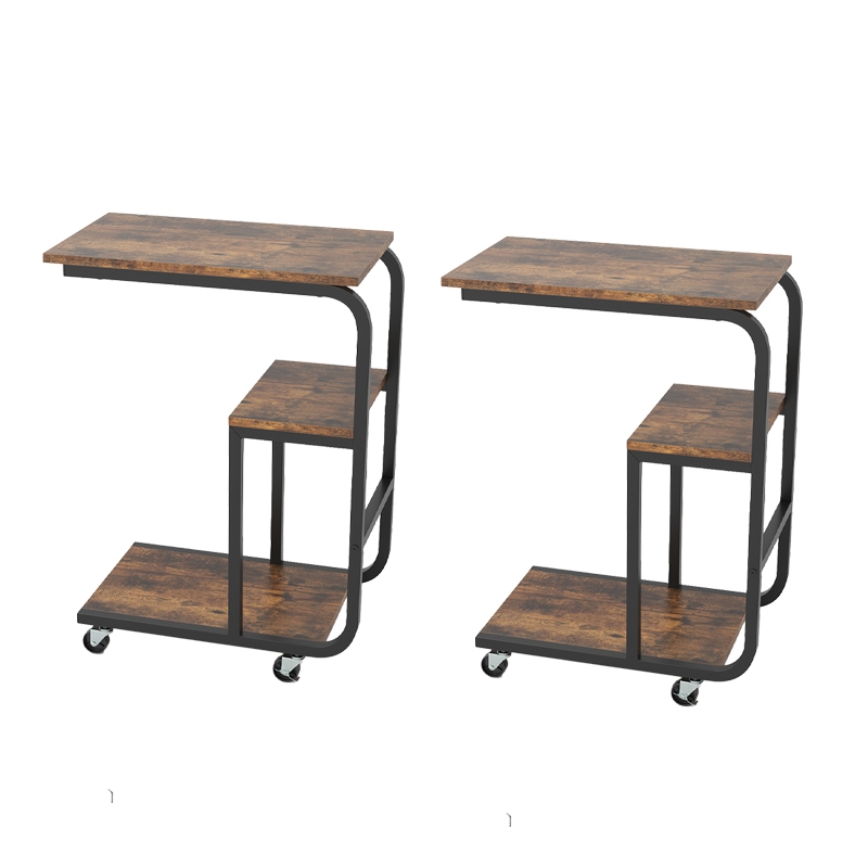 COSTWAY Beistelltisch, Sofatisch mit Rollen, C-Form, 3-stufiger Couchtisch, 53 x 30 x 70 cm, braun(2)