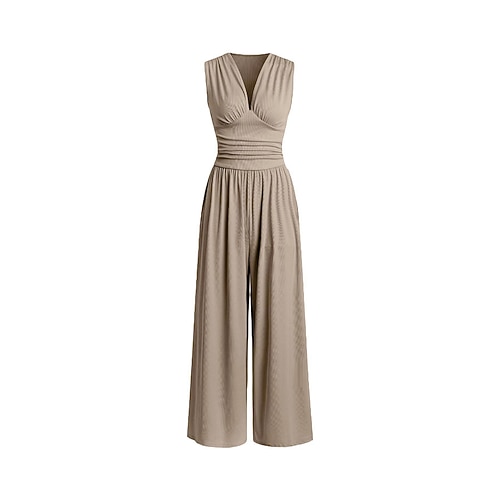 Tuta da donna in cotone e lino, pantaloni, normale, casual, tinta unita, senza maniche, scollo a barchetta, tasche, per strada, per uscire, vestibilità regolare, nera, verde militare, rosa antico, estiva