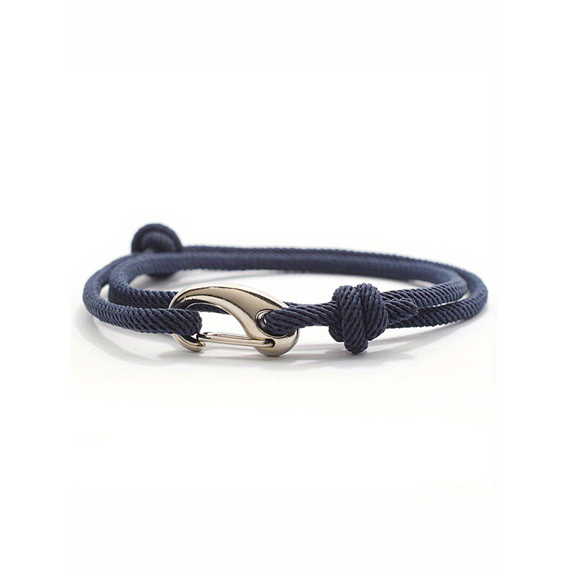 Men's Adjustable Rope Bracelet with Metal Hook Clasp, Christmas Gift Fashion Accessory, Casual Alloy and Polyester Wristband for Holiday and Daily Wear