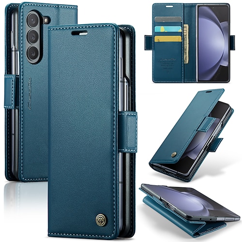 Custodia per Telefono in Vera Pelle per Samsung Galaxy Z Fold 5/Z Fold 4/Z Fold 3 – Custodia Shockproof con Supporto e Protezione per Obiettivo della Macchina Fotografica