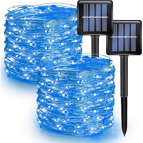 2 Pz 10M/33FT 100 perle LED Esterni IP44 Luci Stringa di Fata Solari Impermeabili Halloween Matrimonio San Valentino Cortile Prato Giardino Decorazione Atmosfera Festiva Luci a Rame