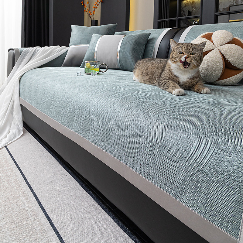 Summer Ice Silk Couch Cover for Pets, Pet Friendly Cooling Sofa Cushion and Throw Blanket, Soft Skin-Friendly Non-Slip Sofa Protector, Luxury Minimalist Slipcover for Living Room