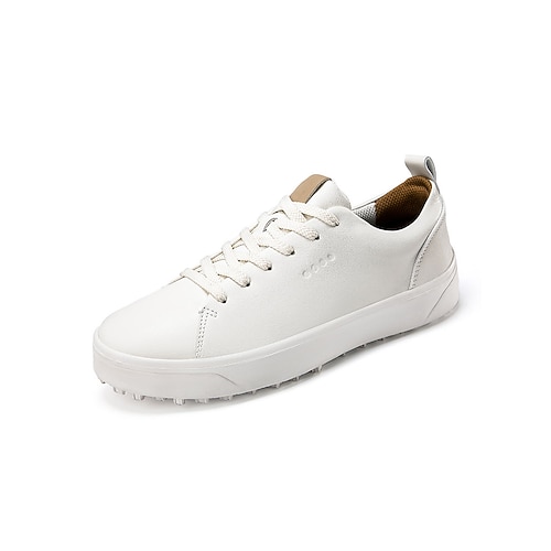 scarpe da golf bianche da uomo, design pulito con lacci, suola ammortizzata leggera, stile sportivo classico per campi da golf e abbigliamento outdoor