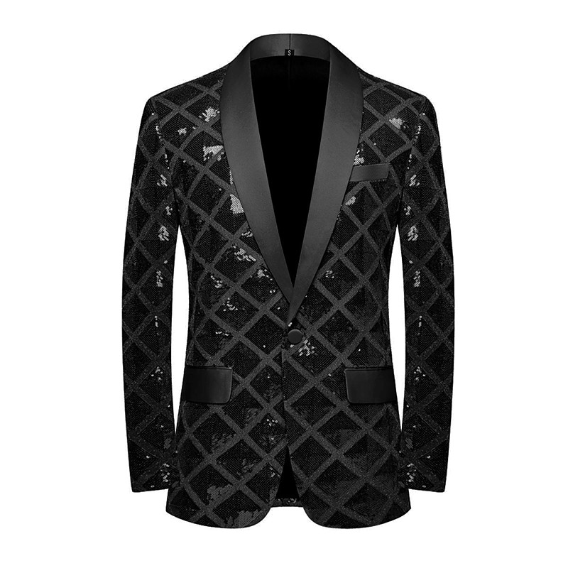 Men's Jacket Blazer Party Ceremony Print Fall Print Party Elegant Shawl Collar Thin Regular Slim Black White Jacket