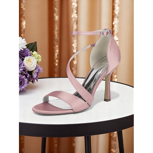 sandali da donna con tacco alto in raso viola e fibbia di strass eleganti tacchi a spillo con cinturino alla caviglia e punta aperta per cocktail party eventi serali