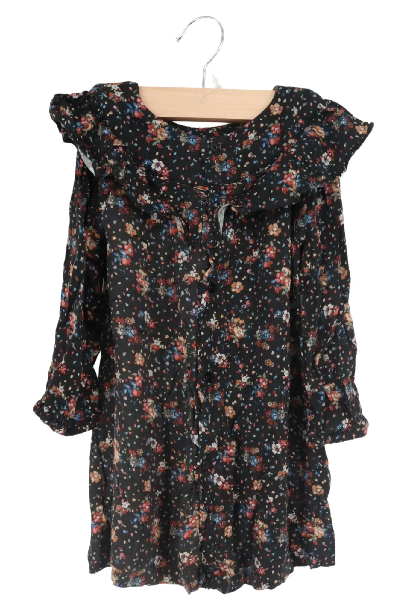 ZARA Kinder Freizeitkleid Gr. 98 Floral Rüschen Schwarz Bunt
