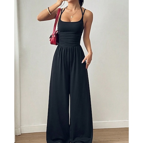 Per donna Normale Tuta Attivo Tinta unica Senza Maniche Gamba larga All'americana Senza schiena Quotidiano Vacanza Vestibilità regolare Nero Vino Estate