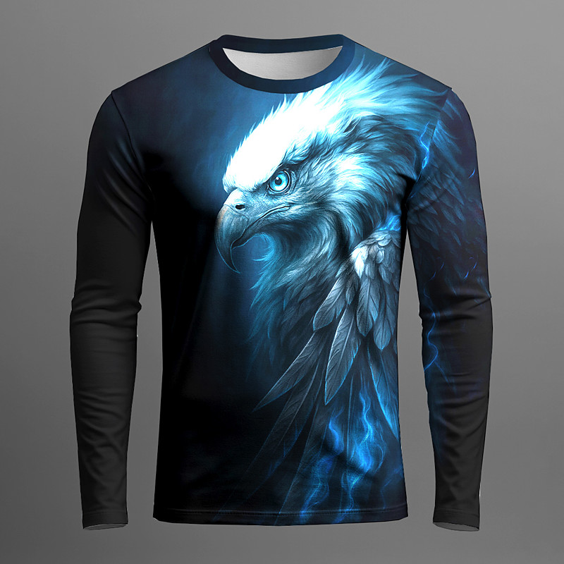 Men's Lion Polo Long Sleeve Polo Shirts Lapel Business Casual Outdoor Street Athleisure Daily Wear 3D Print Buttons Spring Fall Blue Red Purple