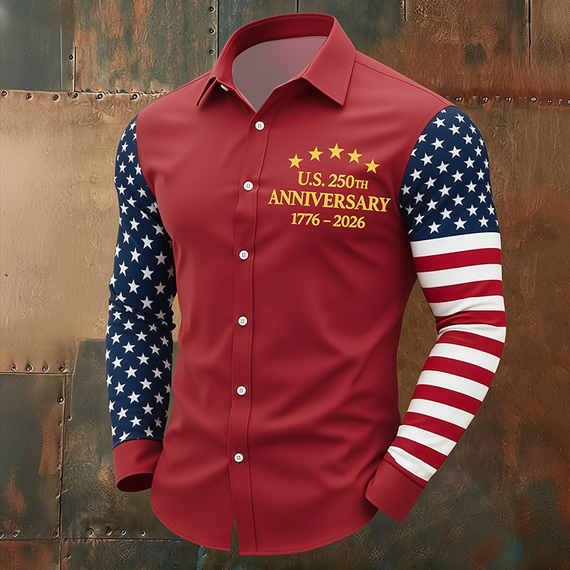 Men's US Flag Patriotic America's 250th Anniversary Shirt Button Up Shirt Long Sleeve Vintage Retro Holiday Casual Daily Spring Fall Turndown 3D Print Linen Like Shirt White Red Dark Blue
