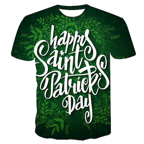 maglietta unisex da uomo per il giorno di San Patrizio stampa 3D stampe grafiche festive lettera del giorno di San Patrizio stampa 3D manica corta top casual moda classico girocollo verde verde scuro