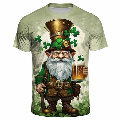 maglietta da uomo per la festa di San Patrizio stampa 3D stampe grafiche giorno di San Patrizio animale girocollo casual quotidiano stampa 3D top a maniche corte moda classico verde /