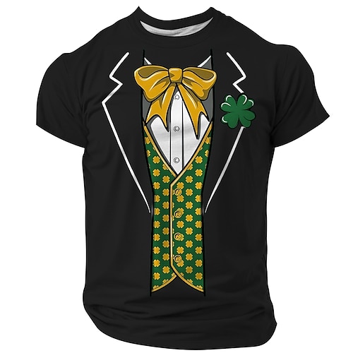 Maglietta da uomo per il giorno di San Patrizio, costume da folletto, smoking verde, papillon, maglietta con grafica 3D, divertente vestito per festa irlandese, abbigliamento, abbigliamento S M L XL