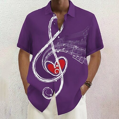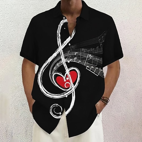 San Valentino Per uomo Note Musicali A cuore Camicia Camicia Estiva Camicia con Bottoni Manica Corta Moda Casual Regalo Ferie Estate Primavera Collo ripiegato Stampa 3D camicie con colletto Una tasca