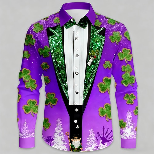 Festa di San Patrizio Per uomo Trifoglio Colletto finto e design del vestito Camicia Camicia con Bottoni Manica Lunga Moda Casual Feste Ferie Primavera Autunno Collo ripiegato Stampa 3D camicie con
