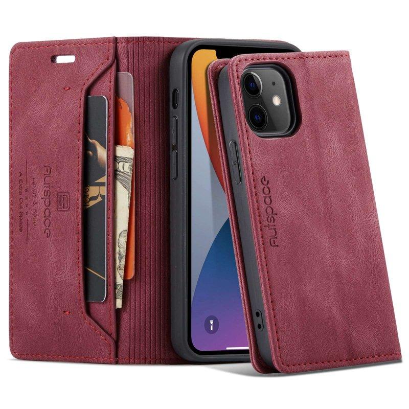 AUTSPACE A01 iPhone 12/12 Pro Plånboksfodral Konstläder - Röd