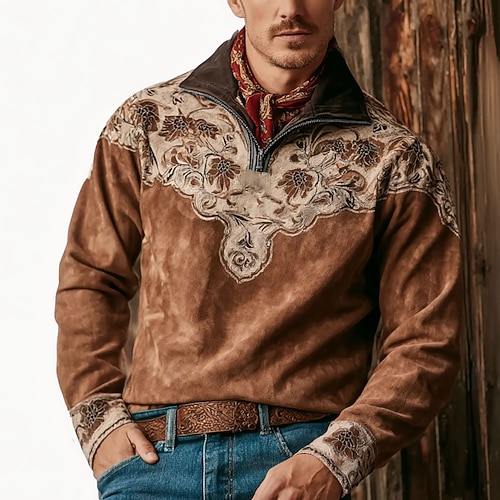 Per uomo Tribale Cowboy Felpa Etnico Vintage Retrò Manica Lunga Collo alla coreana All'aperto Lavoro Regalo Nero Marrone Verde Cerniera Autunno Inverno progettista S M L XL XXL XXXL