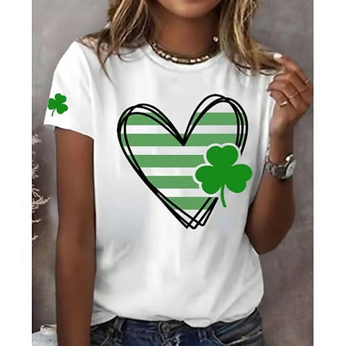 T-shirt da donna per il giorno di San Patrizio grafica floreale shamrock vintage alla moda classica maniche corte collo tondo tops regolari per uscite quotidiane stampa verde estate primavera