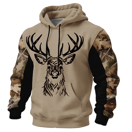 Per uomo Cervo Felpa con Cappuccio Felpa Etnico Vintage Retrò Da caccia Girocollo All'aperto Abbigliamento casual alla moda Marrone Cachi Verde militare Coulisse Autunno Inverno progettista S M L XL