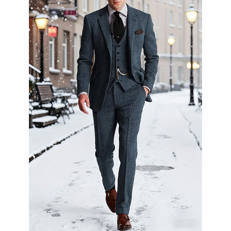 Herren Blazer Weste Anzughose Blazer Anzüge Geschäft Arbeit Hochzeit Mode Streetwear Herbst Winter Nylon Einfarbig 3 Teile Einreihig Blazer Schwarz Burgunderrot Marineblau Königliches Blau