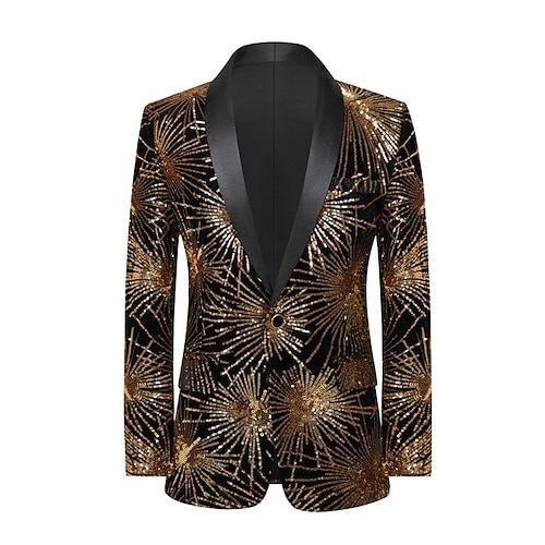 Per uomo Giacca blazer Collo a scialle Natale Festa Brillanti Motivo Linea Blazer Nero e Oro Vestibilità su misura Monopetto Un Bottone