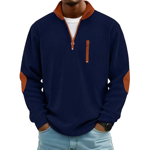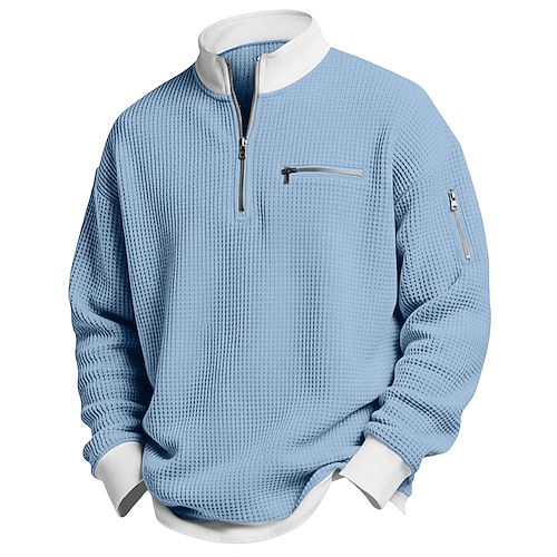 Per uomo Maglietta Waffle Maglietta Manica Lunga Mezza zip Primavera Autunno Inverno Tinta unica Tradizionale / Vintage Casual Blocco di colore Tasca con cerniera All'aperto Casa Sport Outdoor