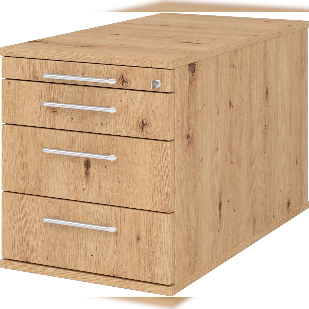bümö Schreibtisch Schrank abschließbar, Schubladenschrank Holz in Asteiche, Container mit Schubladen - Schubladen Schrank Büro, Schreibtisch