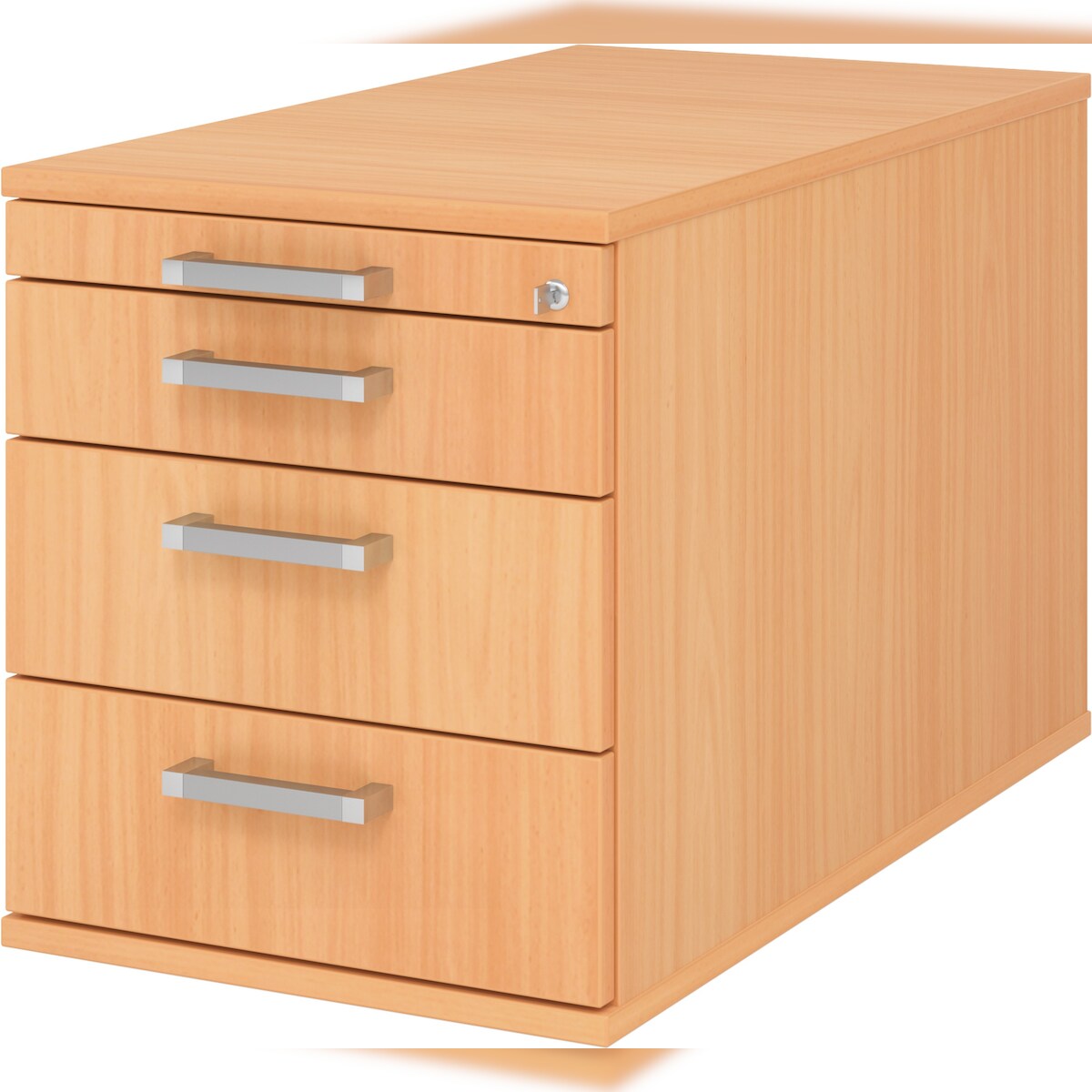 bümö Rollcontainer mit Schubladen, Container abschließbar aus Holz in Buche - Rollwagen für's Büro als Schreibtisch Unterschrank, Bürocontainer od.