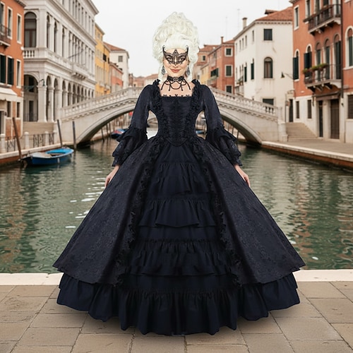 Vintage Rococò Vittoriano Maxi Vestito Normale A sbuffo Cenerentola Principessa Collo quadrato Costume Reale Halloween Carnevale Mascherata Performance Feste Halloween Adulti Tutte le stagioni