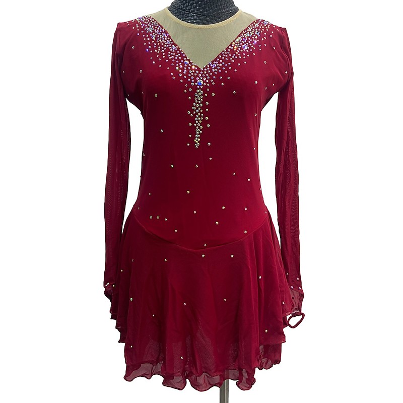 Figure Skating Dress Women's Girls' Ice Skating Dress Red Patchwork Thumbhole Mesh Spandex Stretchy Training Practice Professional Skating Wear Crystal / Rhinestone Long Sleeve Figure Skating