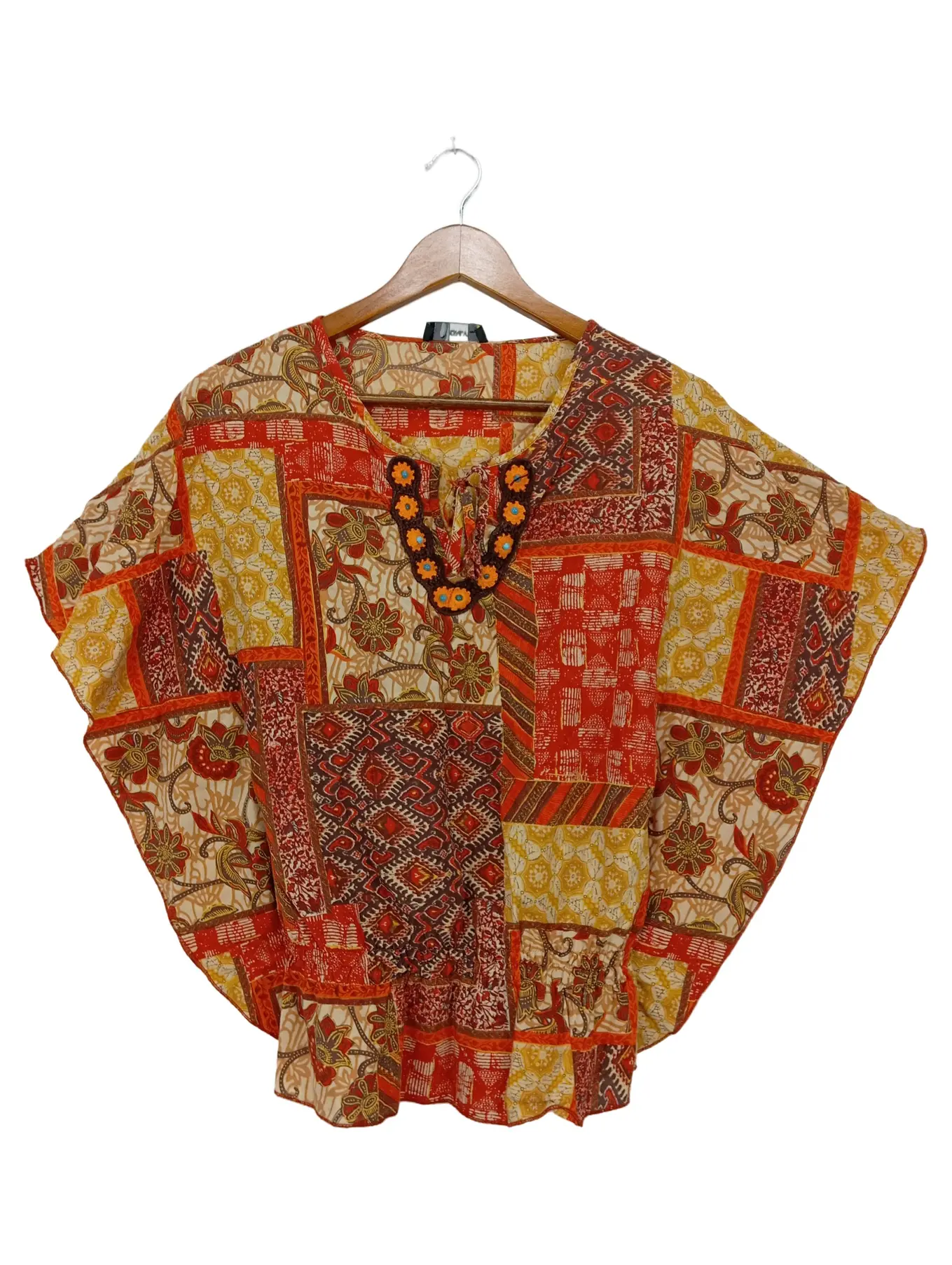 ONLY Damen T-Shirt M Rot Gelb Patchwork Bead Shirt