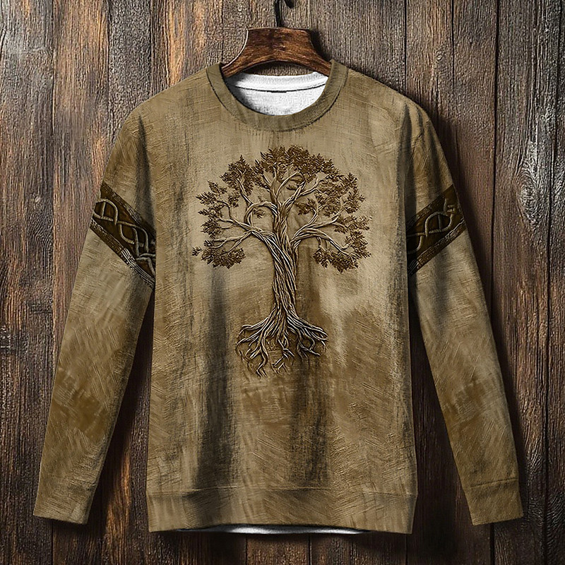 Men's Sweatshirt Blue Brown Green Khaki Crew Neck Tree Of Life Yggdrasil Celtic Knot Print Casual Daily Holiday Vintage Viking Fall Winter Clothing Apparel Hoodies Sweatshirts