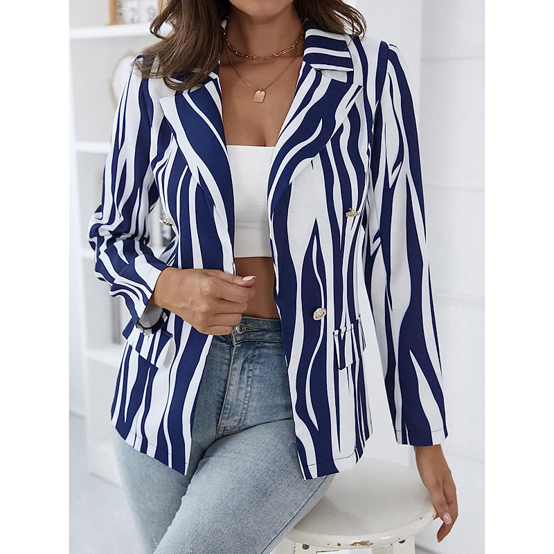 Women's Blazer Casual Work Stripe Stylish Regular Fit Outerwear Long Sleeve Spring Blue